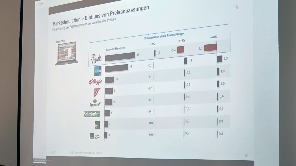 Anhand praxisnaher Beispiele wurde verdeutlicht, wie vielfältig die Methoden moderner Marktforschung sind und welche Rolle sorgfältige Datenauswertung spielt. Besonders eindrucksvoll war für die Teilnehmenden die Erkenntnis, dass bereits kleinste Änderungen in der Produkt-, Preis-, Distributions- oder Kommunikationspolitik deutliche Auswirkungen auf das Verhalten von Konsumentinnen und Konsumenten haben können.
